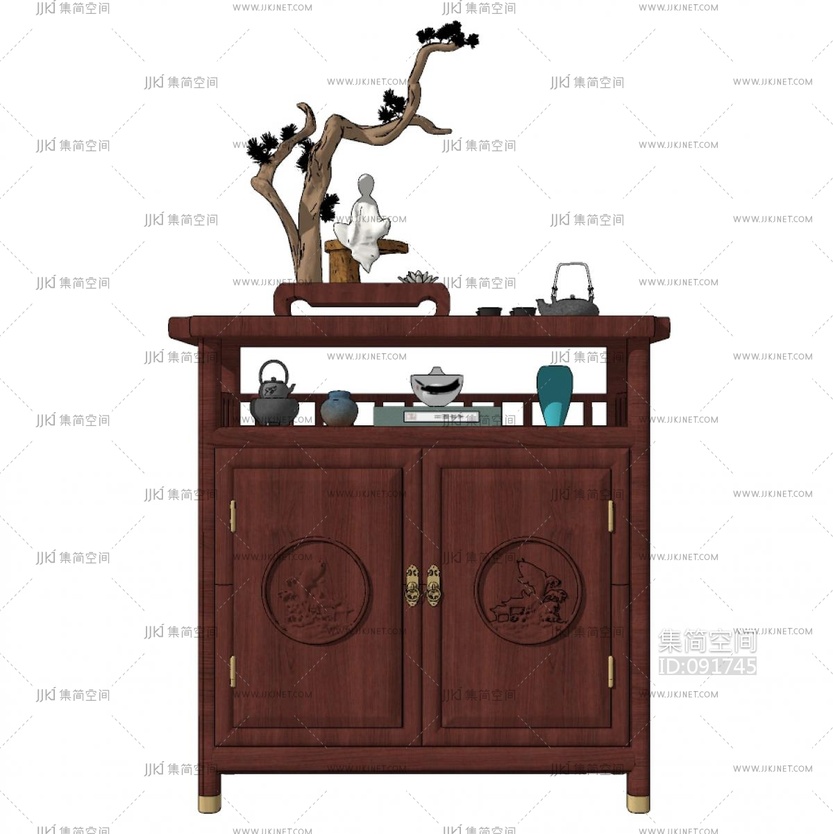 新中式红木茶柜边柜 su草图模型下载 [模型ID:91745]