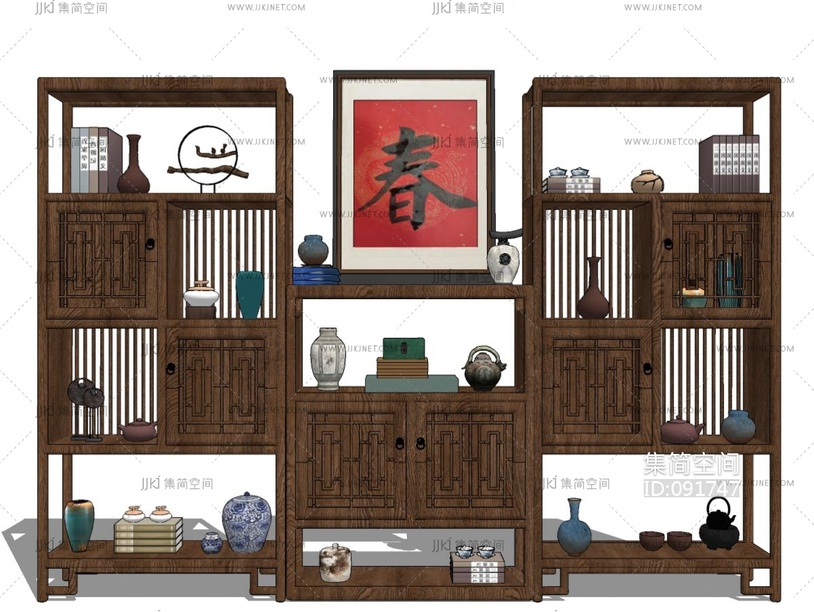 新中式实木博古架 su草图模型下载 [模型ID:91747]