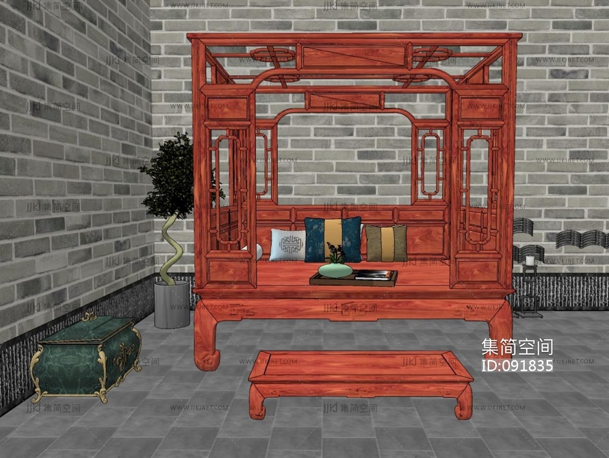 新中式罗汉床SU模型su草图模型下载