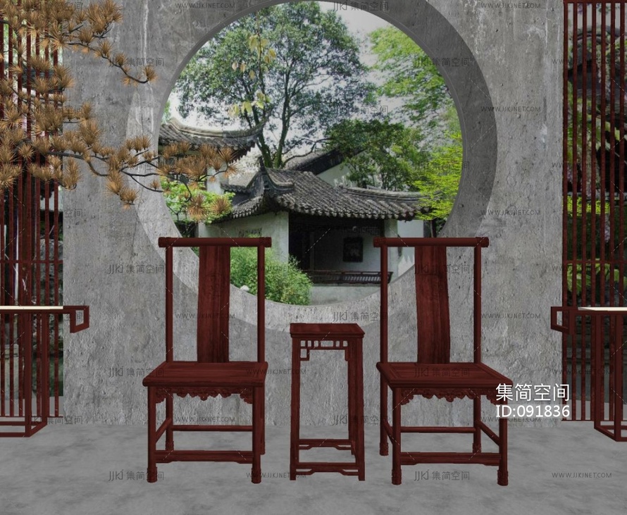中式古典红木实木家具官帽椅 su草图模型下载 [模型ID:91836]
