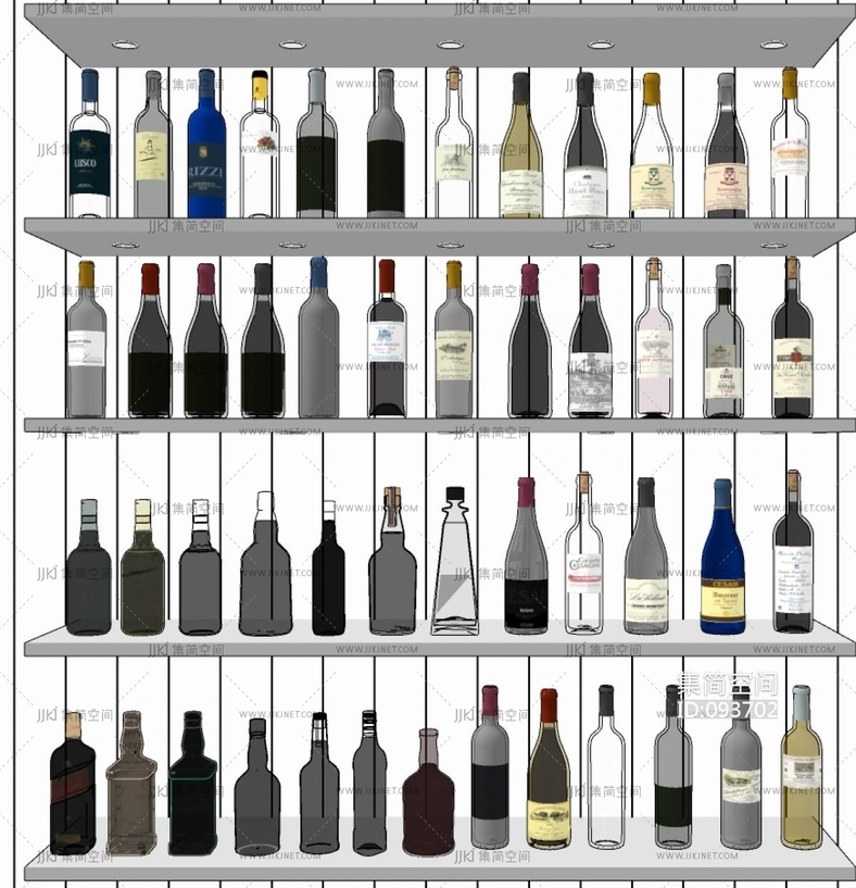 现代红酒酒瓶子组合 su草图模型下载 [模型ID:93702]