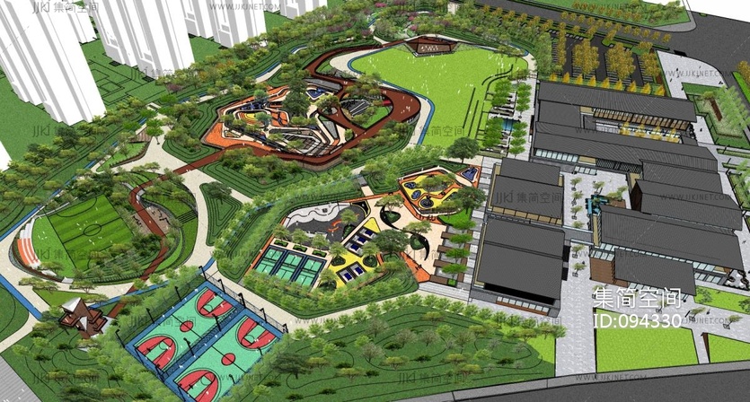 06现代园林公园景观规划,篮球场,足球场 su草图模型下载 [模型ID:94330]