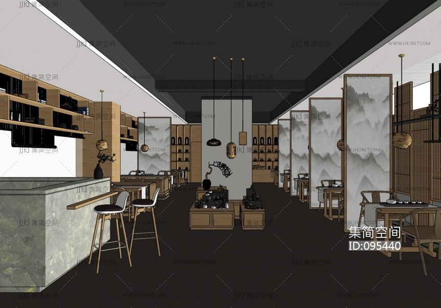 新中式茶馆,茶楼 su草图模型下载 [模型ID:95440]