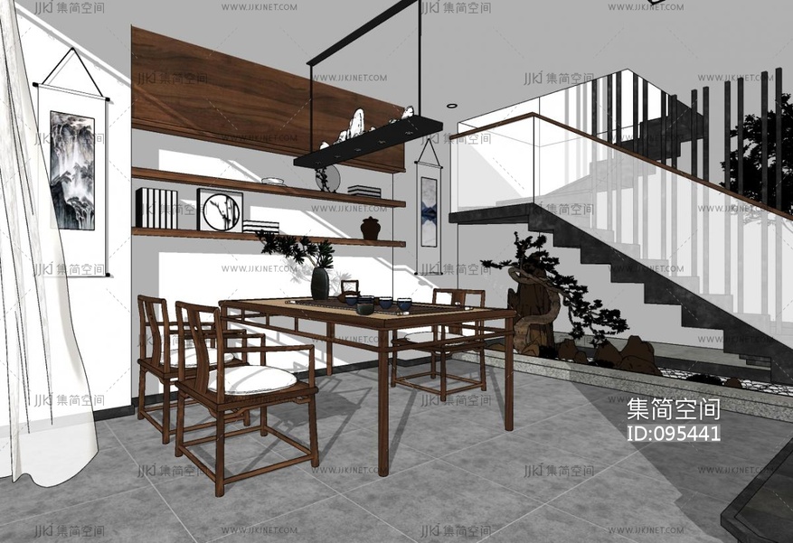 新中式茶楼,茶馆 su草图模型下载 [模型ID:95441]