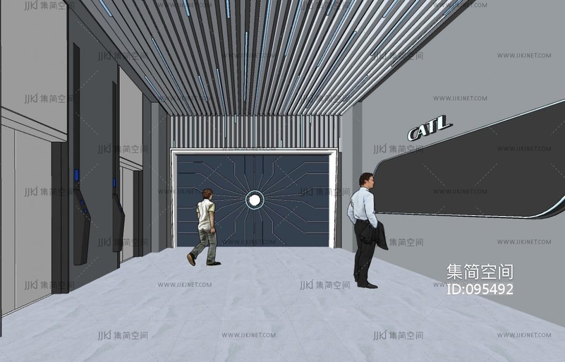 后现代科技电梯厅 su草图模型下载 [模型ID:95492]