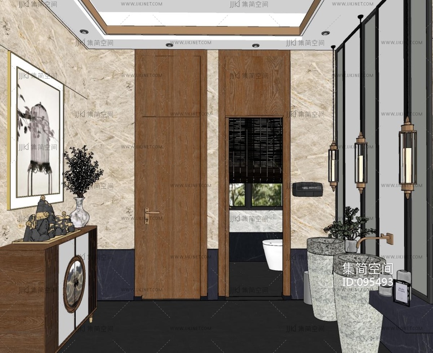 新中式酒店卫生间 su草图模型下载 [模型ID:95493]