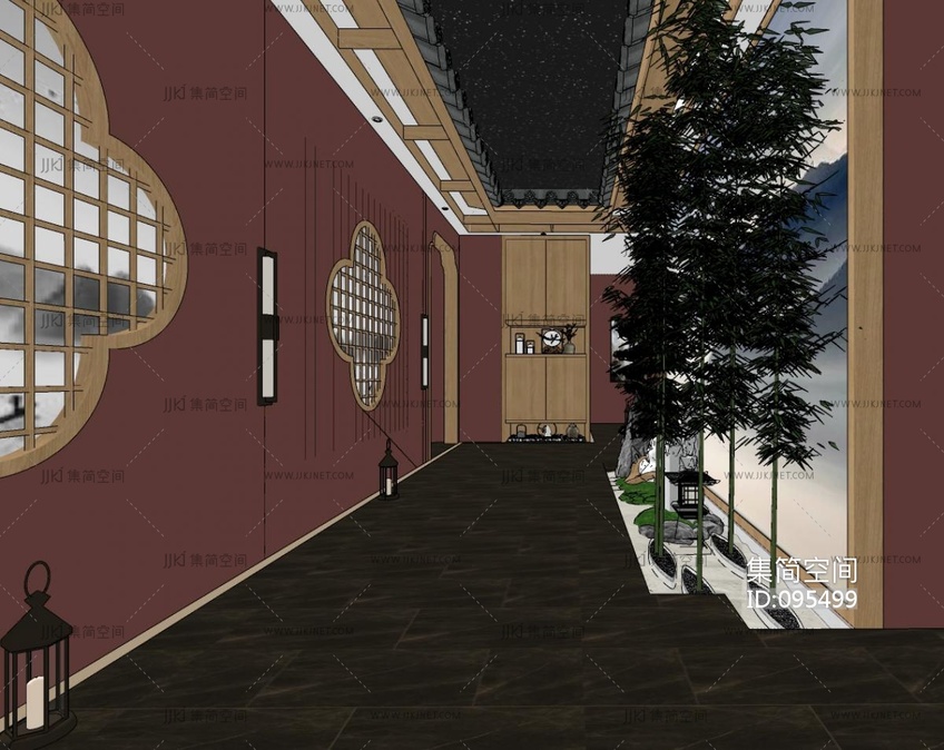 新中式轻奢酒店会所,茶楼,走廊 su草图模型下载 [模型ID:95499]