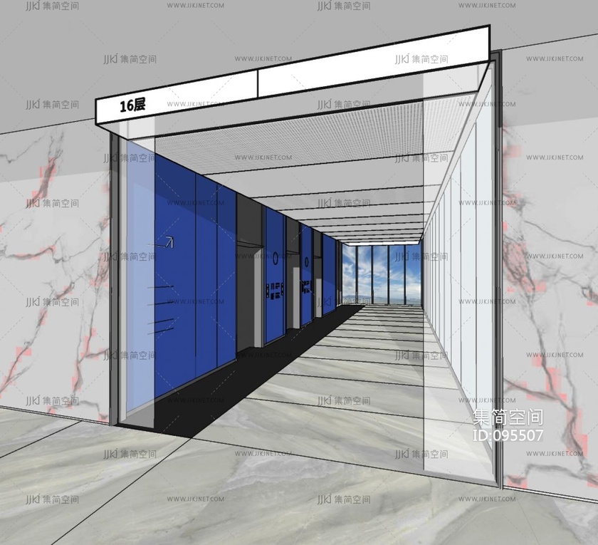 现代电梯厅 su草图模型下载 [模型ID:95507]