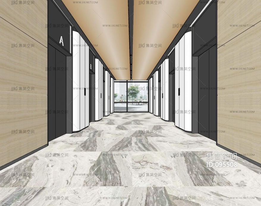 现代写字楼电梯厅 su草图模型下载 [模型ID:95508]