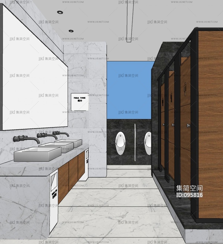 新中式公共卫生间小便器中式盆景隔断托盘SU模型su草图模型下载