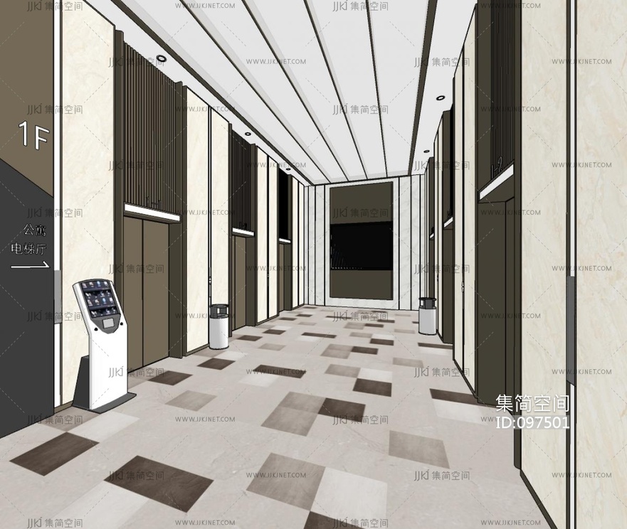 现代公寓电梯厅 su草图模型下载 [模型ID:97501]