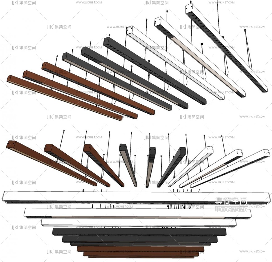 现代条形办公吊灯 su草图模型下载 [模型ID:97576]