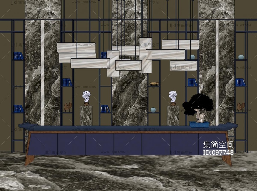 新中式酒店接待区, su草图模型下载 [模型ID:97748]