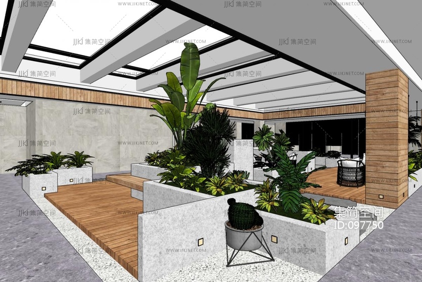 现代室内办公园林景观 su草图模型下载 [模型ID:97750]