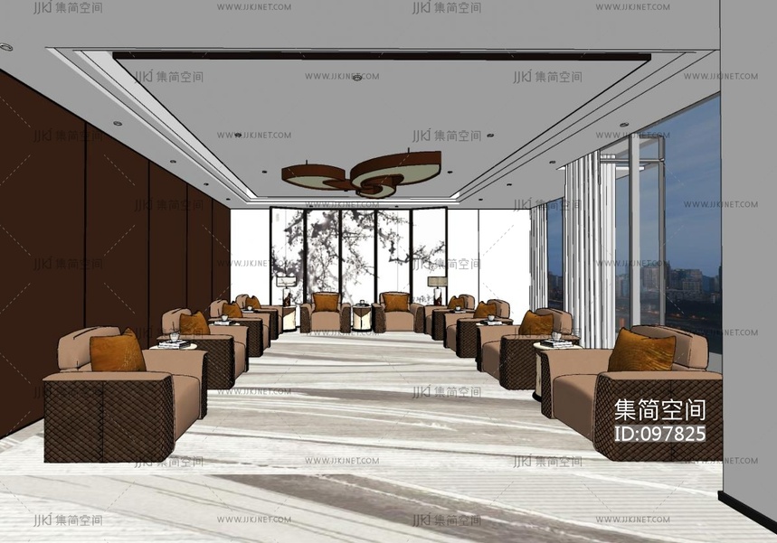 新中式贵宾接待室 su草图模型下载 [模型ID:97825]