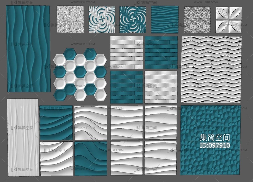 现代凹凸波纹造型软包墙饰组合 su草图模型下载 [模型ID:97910]