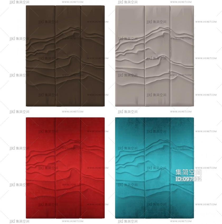 新中式山水纹软包背景墙 su草图模型下载 [模型ID:97912]
