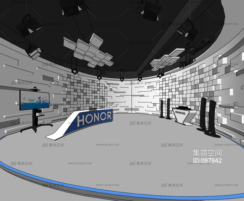 现代简约直播室导播室 su草图模型下载 [模型ID:97942]