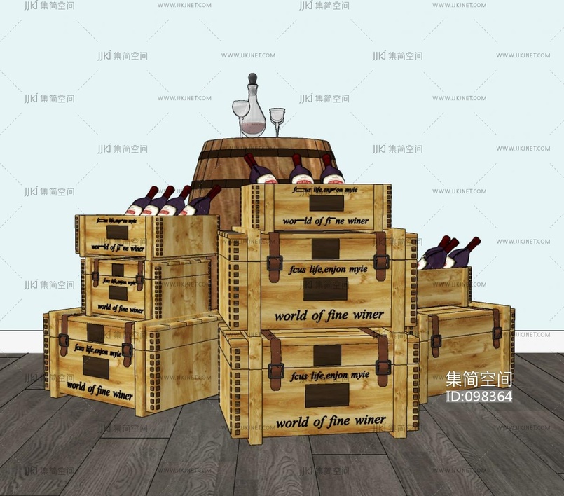 现代红酒箱,木桶 su草图模型下载 [模型ID:98364]