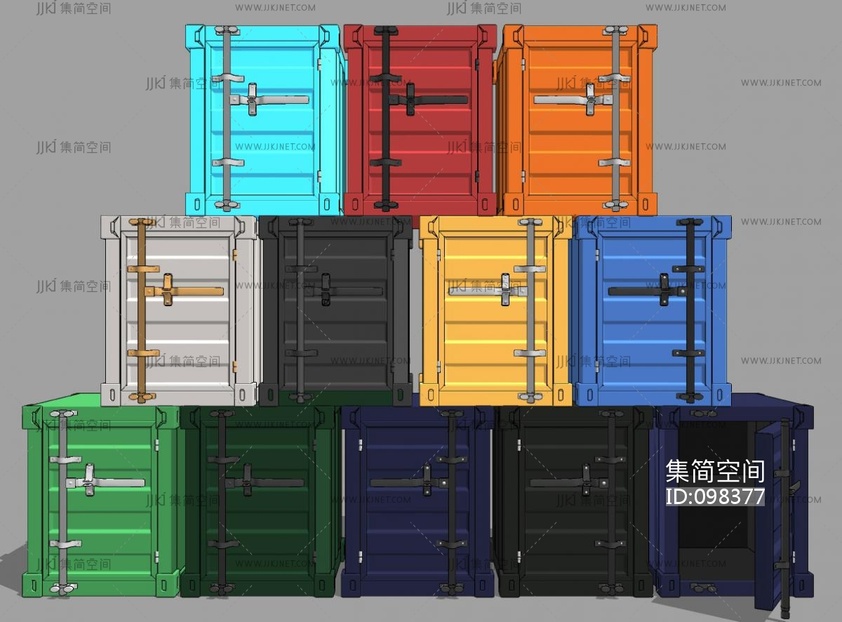 工业风集装箱储物柜 su草图模型下载 [模型ID:98377]