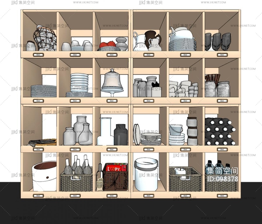 现代厨具餐具,置物架 su草图模型下载 [模型ID:98378]