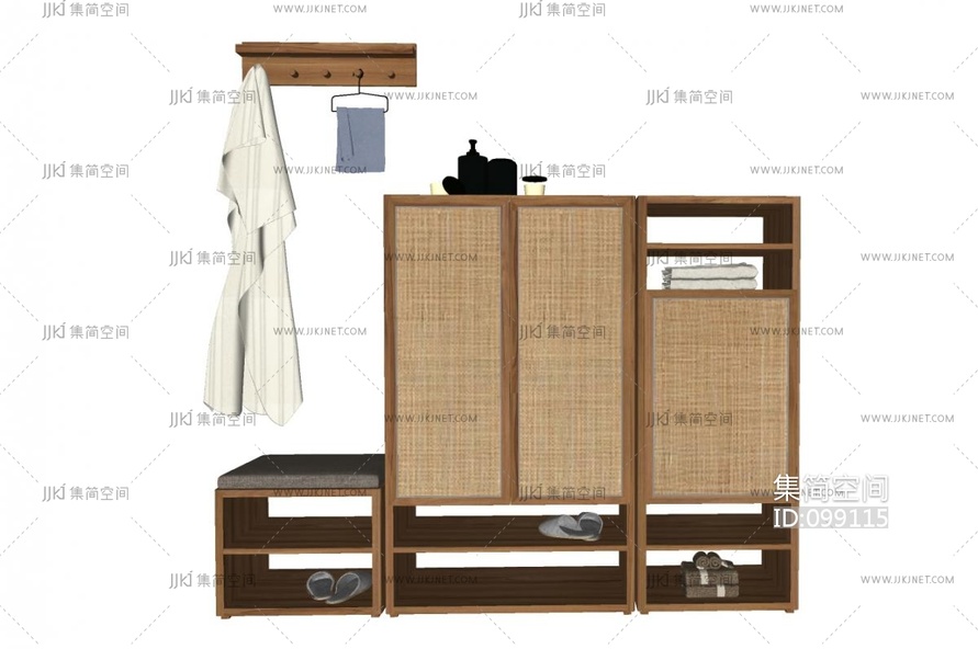山隐造物 新中式鞋柜 su草图模型下载 [模型ID:99115]