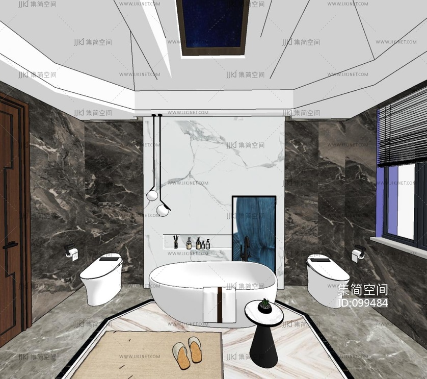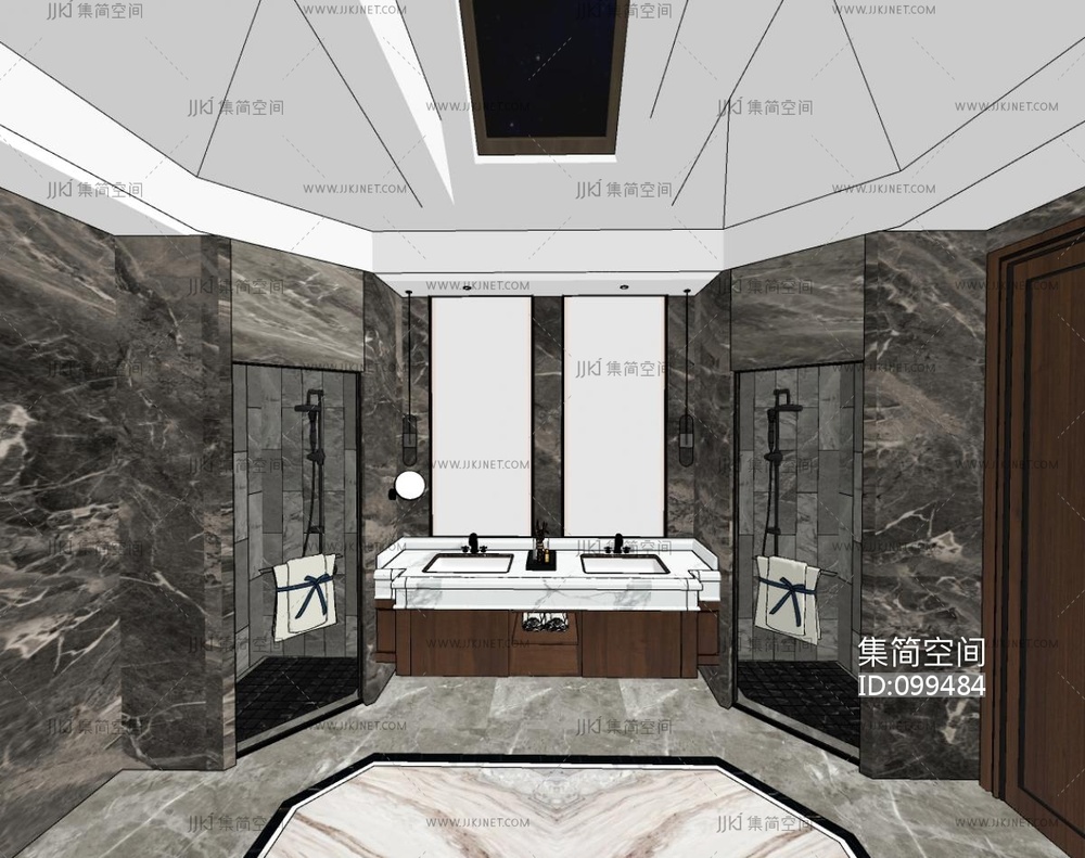 现代酒店卫生间浴室 su草图模型下载 [模型ID:99484]