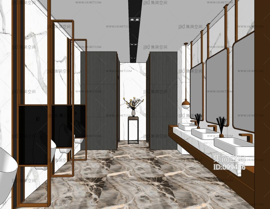 现代酒店公共卫生间 su草图模型下载 [模型ID:99486]