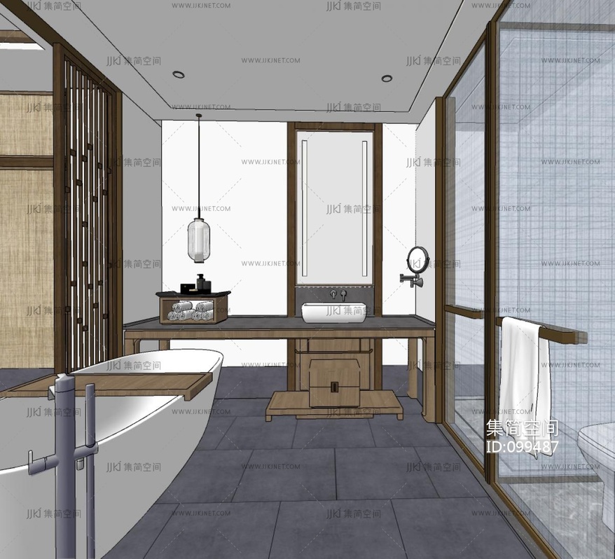 新中式酒店客房卫生间 su草图模型下载 [模型ID:99487]