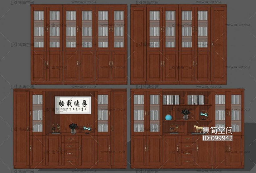 新中式实木文件柜, su草图模型下载 [模型ID:99942]