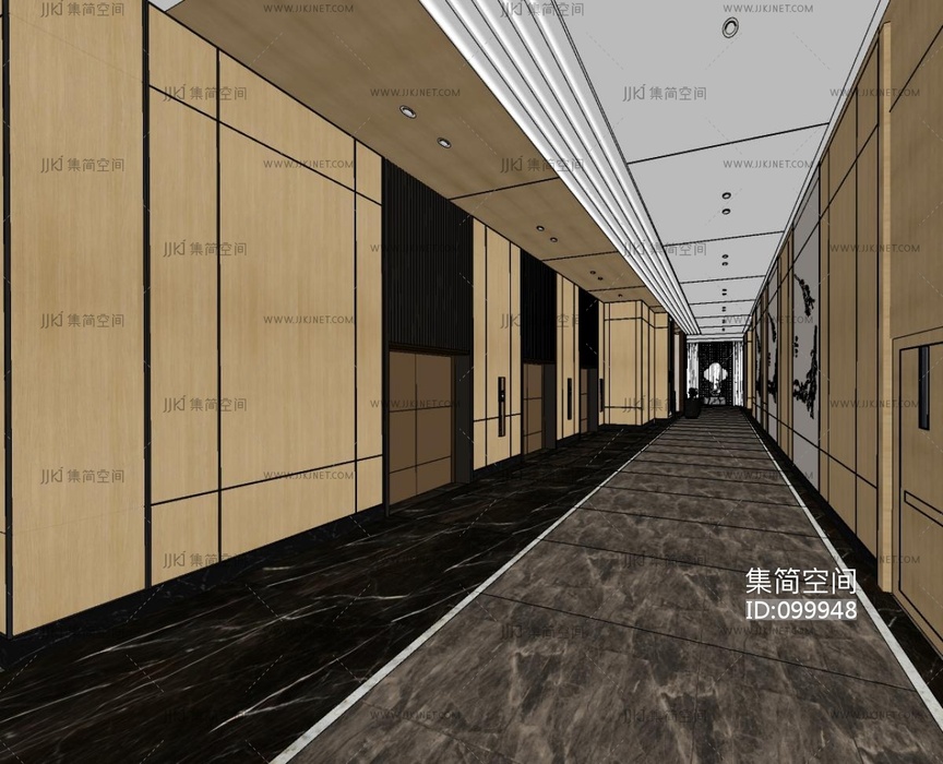 新中式酒店会所电梯厅 su草图模型下载 [模型ID:99948]