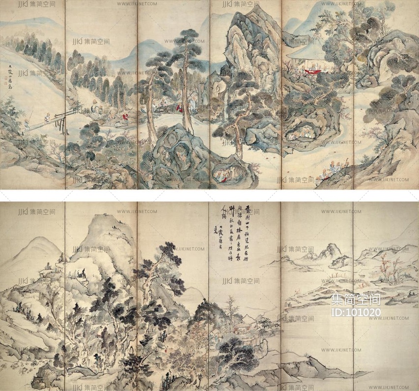 a新中式屏风画背景画山水画 (4) 材质贴图下载