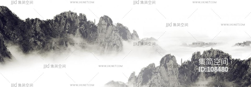 新中式山水烟墨画壁画 材质贴图下载 [贴图ID:108480]