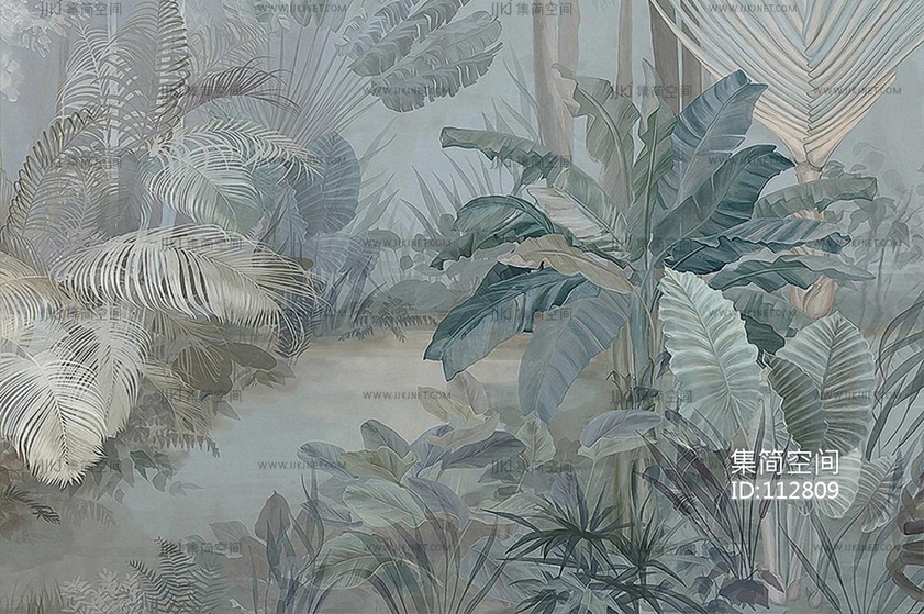 墙酷 现代东南亚热带植物动物绿色壁画材质贴图下载