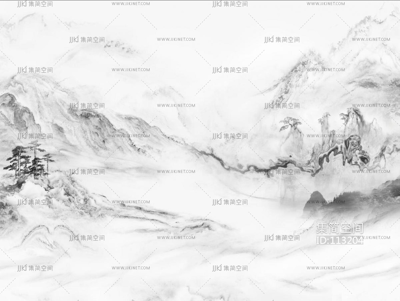 新中式山脉松树彩绘壁纸工笔画- (6)材质贴图下载