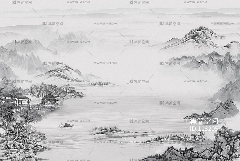新中式水墨山水壁纸 水墨壁纸 材质贴图下载 [贴图ID:00]
