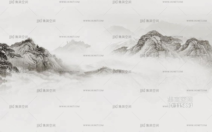 黑白山水壁纸壁布壁画背景画 (1) 材质贴图下载