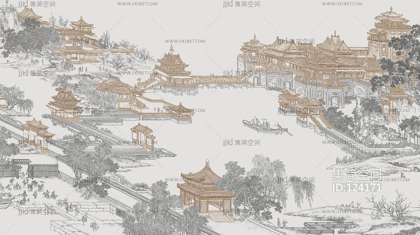 新中式清明上河图彩绘壁纸工笔画- (5)材质贴图下载