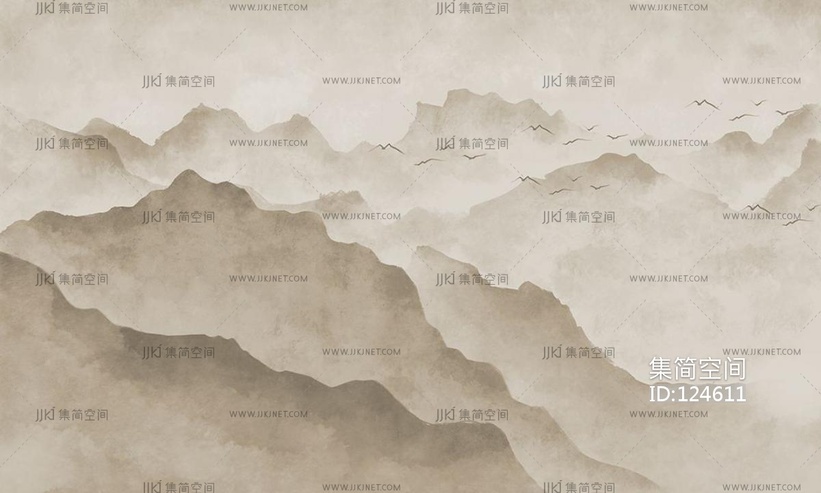 新中式山脉背景壁纸壁布壁画屏风画 (4) 材质贴图下载