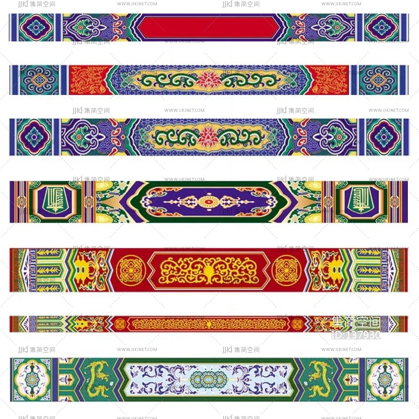 中式古建彩绘房梁藻井 (3) 材质贴图下载