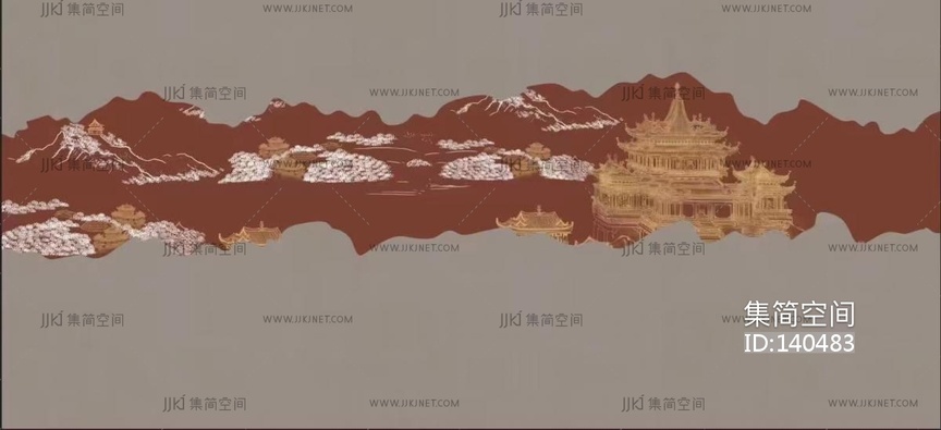 新中式建筑彩绘壁纸工笔画 (9)材质贴图下载