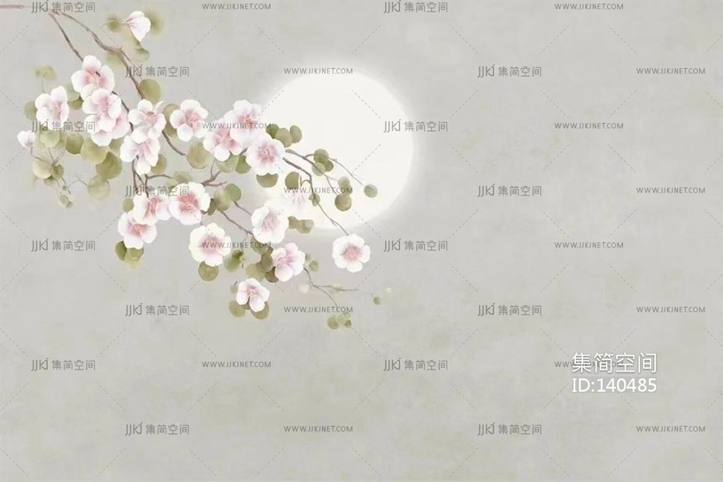 新中式梅花彩绘壁纸工笔画- -(6) 材质贴图下载