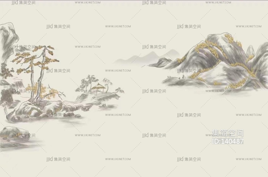 新中式山脉松树彩绘壁纸工笔画- (6) 材质贴图下载 [贴图ID:140487]