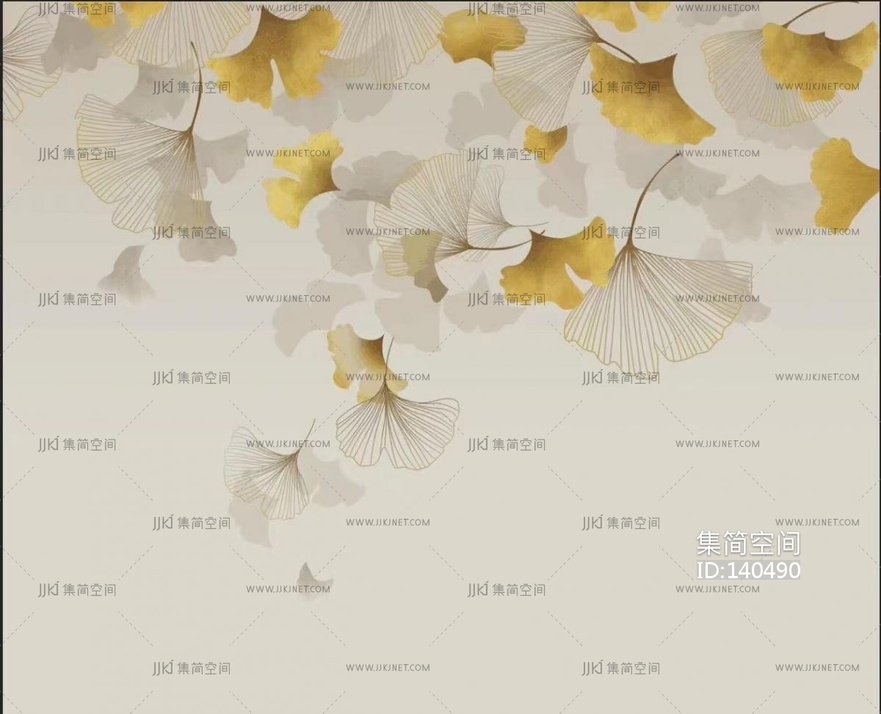 新中式银杏叶彩绘壁纸工笔画 (7) 材质贴图下载 [贴图ID:140490]