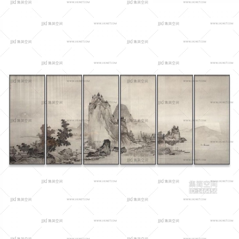 新中式装饰画 挂画 新中式山水横幅挂画装饰画贴图(266) 材质贴图下载 [贴图ID:146456]