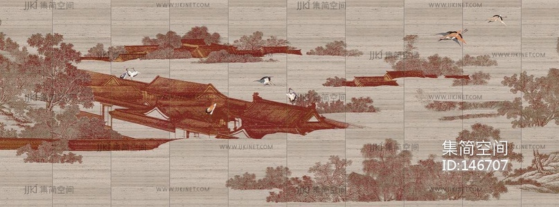 新中式建筑装饰画 挂画 新中式横幅挂画装饰画屏风画背景画壁布贴图(277) 材质贴图下载