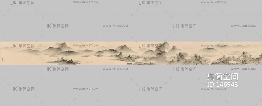 国风上水长卷壁布国画贴图 材质贴图下载 [贴图ID:146943]