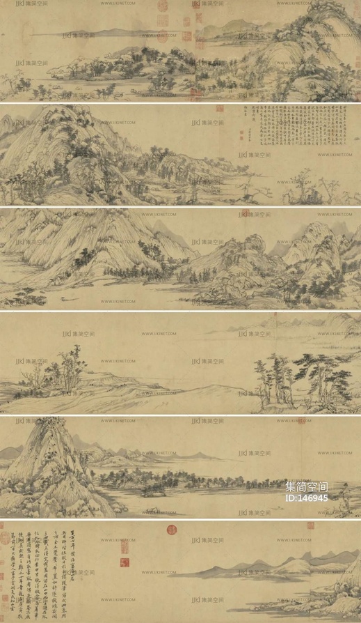 千里江山山水装饰画 山水画贴图 材质贴图下载
