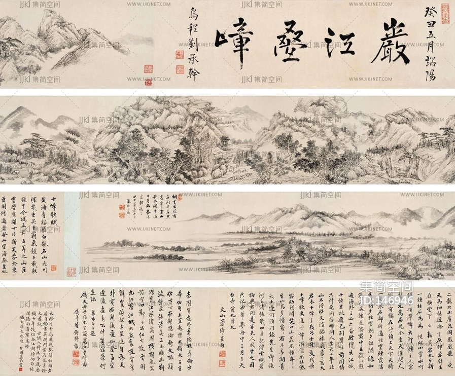 书法四联装饰字画国画字画山水画贴图 材质贴图下载 [贴图ID:146946]