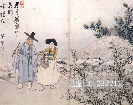 韩国朝鲜族韩式古典人物山水字画 (9) 材质贴图下载 [贴图ID:032211]